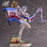 Reno from "Azur Lane" is here to cheer on the Eagle Union, and you, in her cheerleader outfit! Her tiny bikini worn under a translucent top and pleated skirt shows off her spectacular curves; her silver hair is also made with a translucent material that's partly painted for a realistic look. Her base includes the majestic flag held in place by her two mascots, and you'll love her lively pose, too! You need this gorgeous girl in your fleet, Admiral -- order her today!