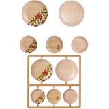 MIC's "Puripura Figure Plate" series takes advantage of printing and painting techniques to try out various designs and patterns! This third entry in the series features a light-colored woodgrain design printed on both sides, matched with retro Showa patterns to create a nostalgic feel! They're wonderful to display together with your figures or dolls, and they look great displayed on their own, too! This set includes two large plates and three small plates. Order yours today!